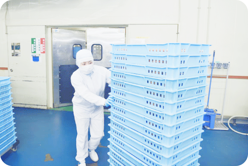 私は以前飲食業で勤めていました。厨房で仕込みをやったり、販売したり、お客様に提供したりと、充実していたんですが、その会社を辞めてしまったんです。それで心残りがあって、新しい仕事も食に関する仕事がいいなと思って、派遣で食品関係の会社を探してもらって入りました。初めは派遣だったんですけど、それからパートになって、声をかけていただいて社員になりました。嬉しかったですね。昼間だけでも結構な人数がいるので、その中で声をかけていただけて……。どういうところが評価されたのか、自分では分からないので聞いてみたいですけど(笑)。